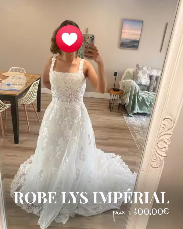 Nous conseillons vivement aux clientes qui souhaitent réserver leur robe de verser un acompte, dès qu’elles ont fait leur choix. Cela permet de lancer immédiatement la confection de leur robe et de bloquer leur place dans notre planning de production, souvent très demandé.